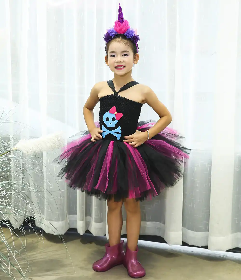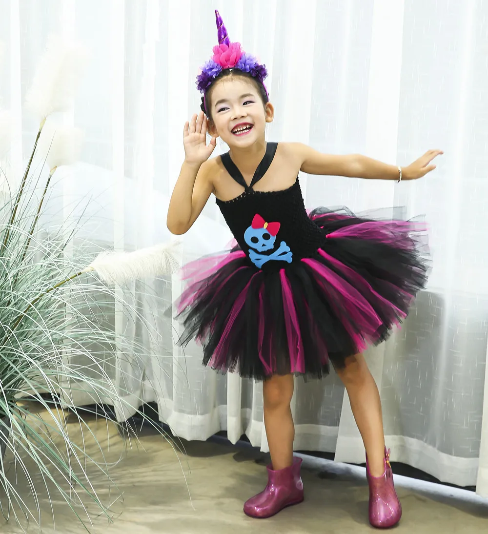 Girl Rock Star Halloween Scary Skull Cosplay Tutu Dress For Baby