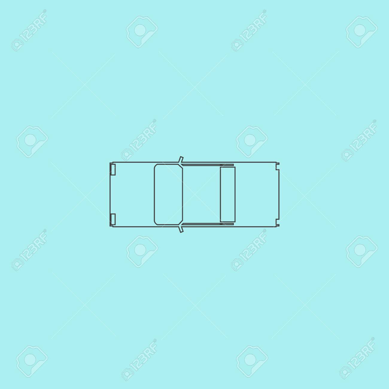 Car Top View Simple Outline Flat Vector Icon Isolated On Blue