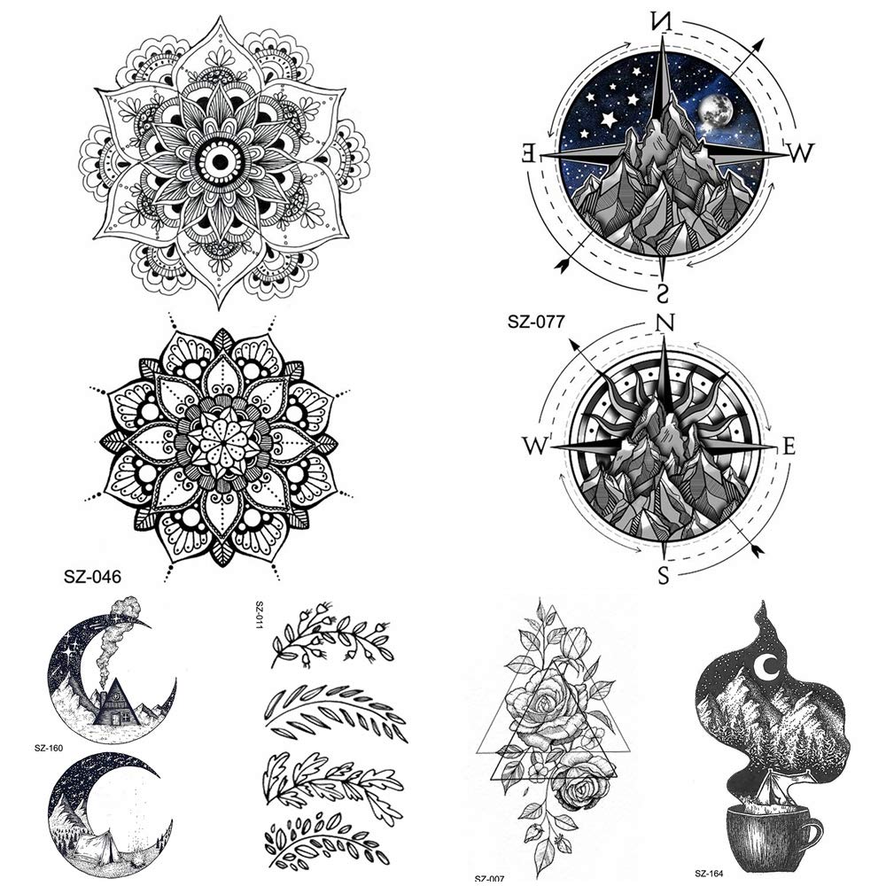 Amazon Com Black Flora Temporary Tattoo Mandala Compass